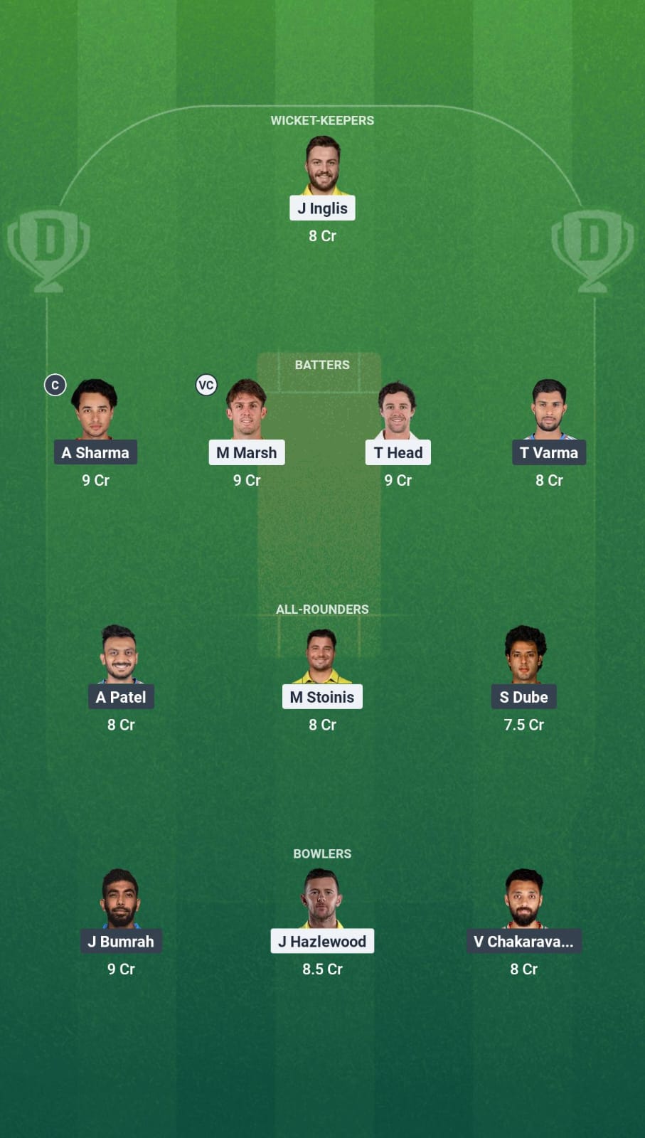 Since the seamers are likely to enjoy an advantage on this ground, we are selecting Josh Hazlewood and Jasprit Bumrah as our new ball pair. We are also bringing in Varun Chakravarthy as the specialist spinner.