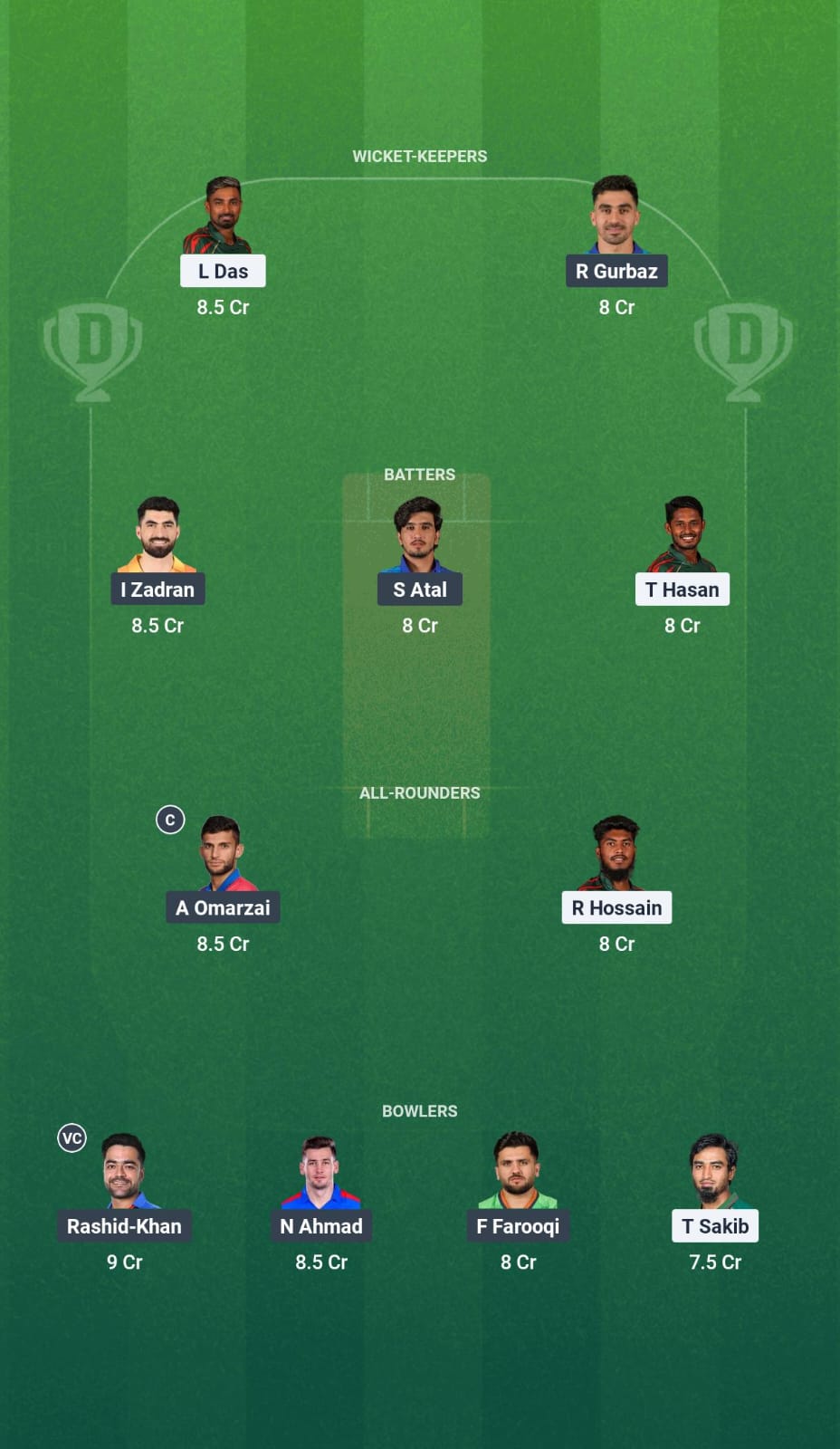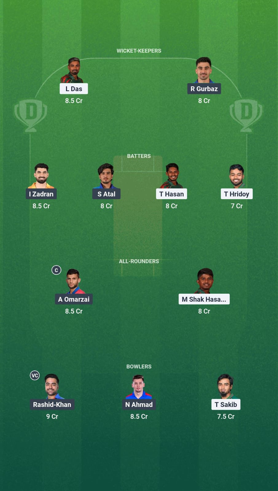 Sediqullah Atal is in excellent form of late and is an obvious choice. Ibrahim Zadran, Tanzid Hasan, and Towhid Hridoy also make it to our side.