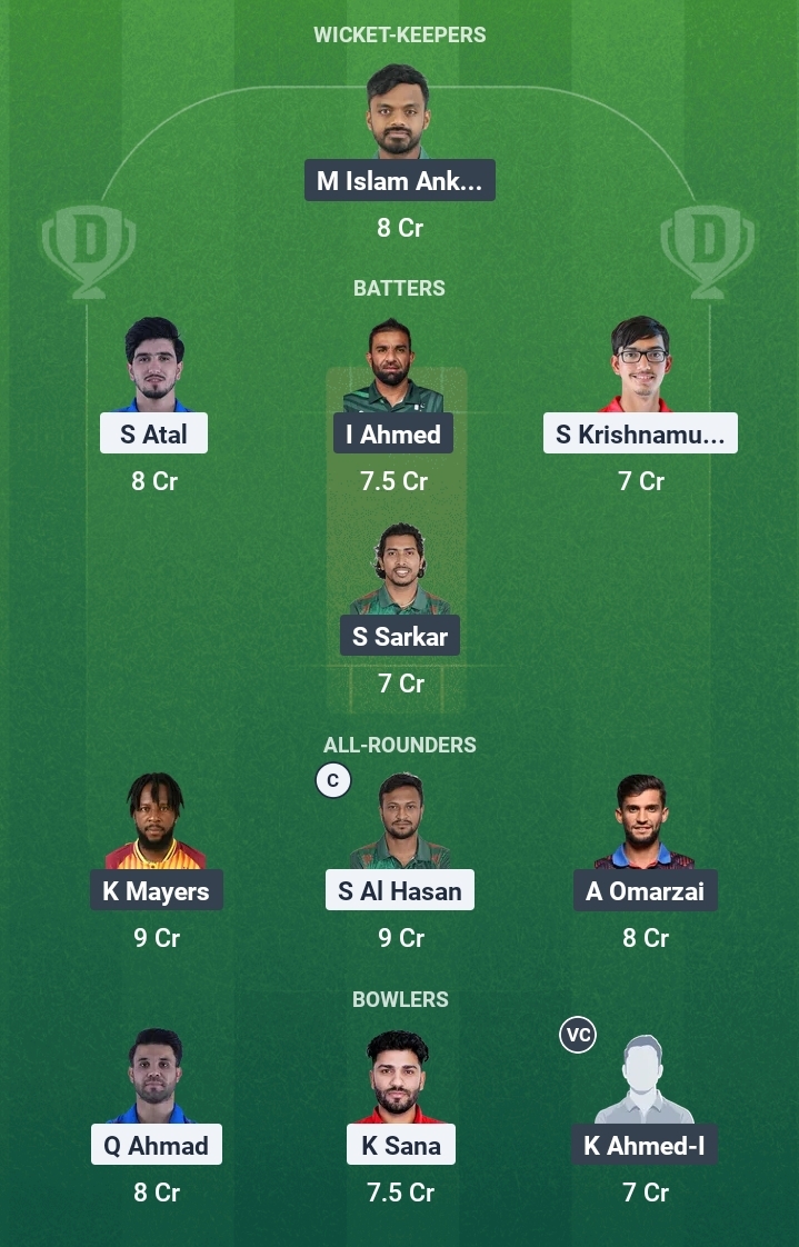 Ibrahim Zadran, Soumya Sarkar, Kyle Mayers, Yasir Ali, Nurul Hasan (c/wk), Azmatullah Omarzai, Iftikhar Ahmed, Mahidul Islam Ankon, Rakibul Hasan, Tabraiz Shamsi, Khaled Ahmed