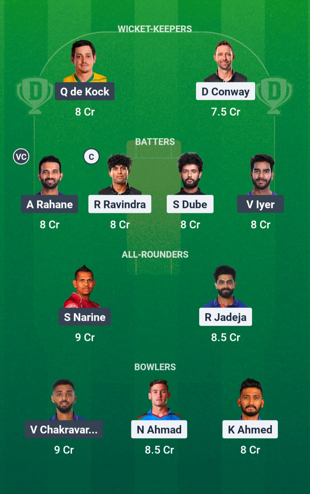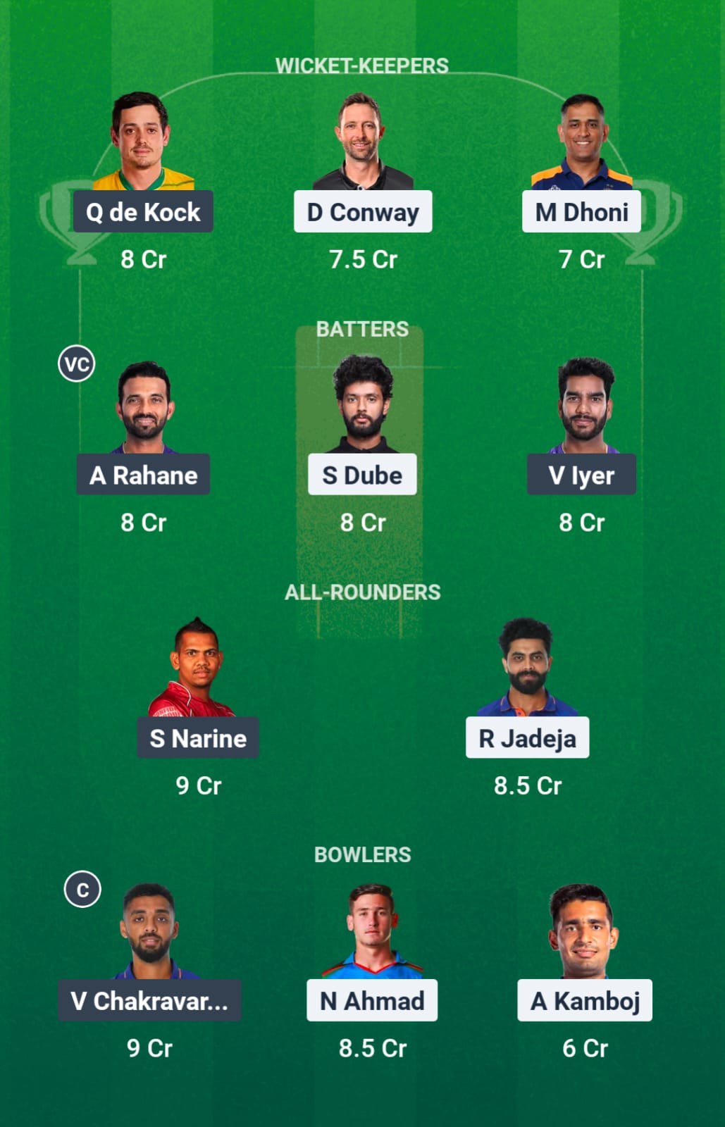The all-rounders haven’t been able to perform to their full potential. We are picking up Sunil Narine and Ravindra Jadeja to cover the spin attack as well.