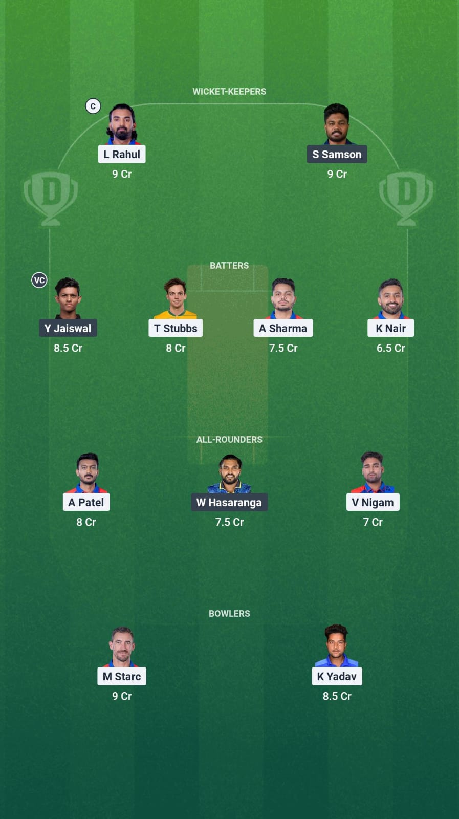 Since we are expecting a high-scoring game, picking up plenty of batsmen is the key. Yashasvi Jaiswal is pretty experienced at the top of the order while Karun Nair made an excellent return to the IPL. The others in our team include Ashutosh Sharma and Tristan Stubbs.