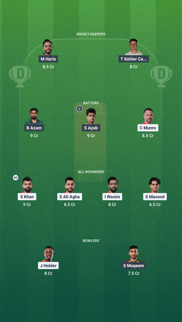 Sahibzada Farhan, Andries Gous, Colin Munro, Salman Agha, Azam Khan (WK), Shadab Khan (C), Imad Wasim, Jason Holder, Naseem Shah, Riley Meredith, Muhammad Shahzad