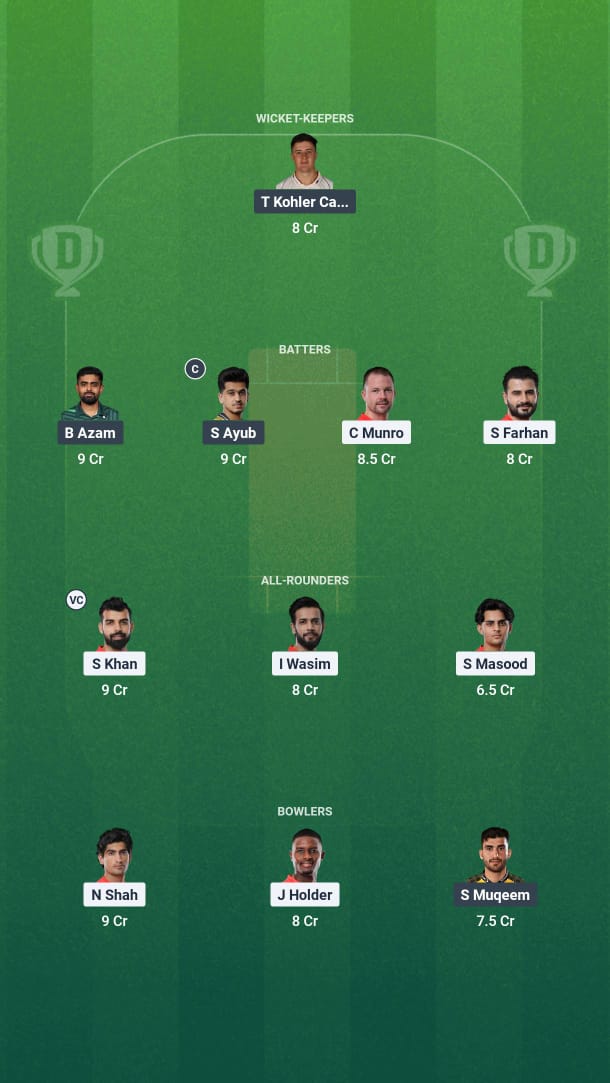 As the venue is known to be batsmen-friendly, we are picking up quite a few batsmen for this match. Babar Azam, Saim Ayub, Colin Munro, and Sahibzada Farhan make it to our XI.