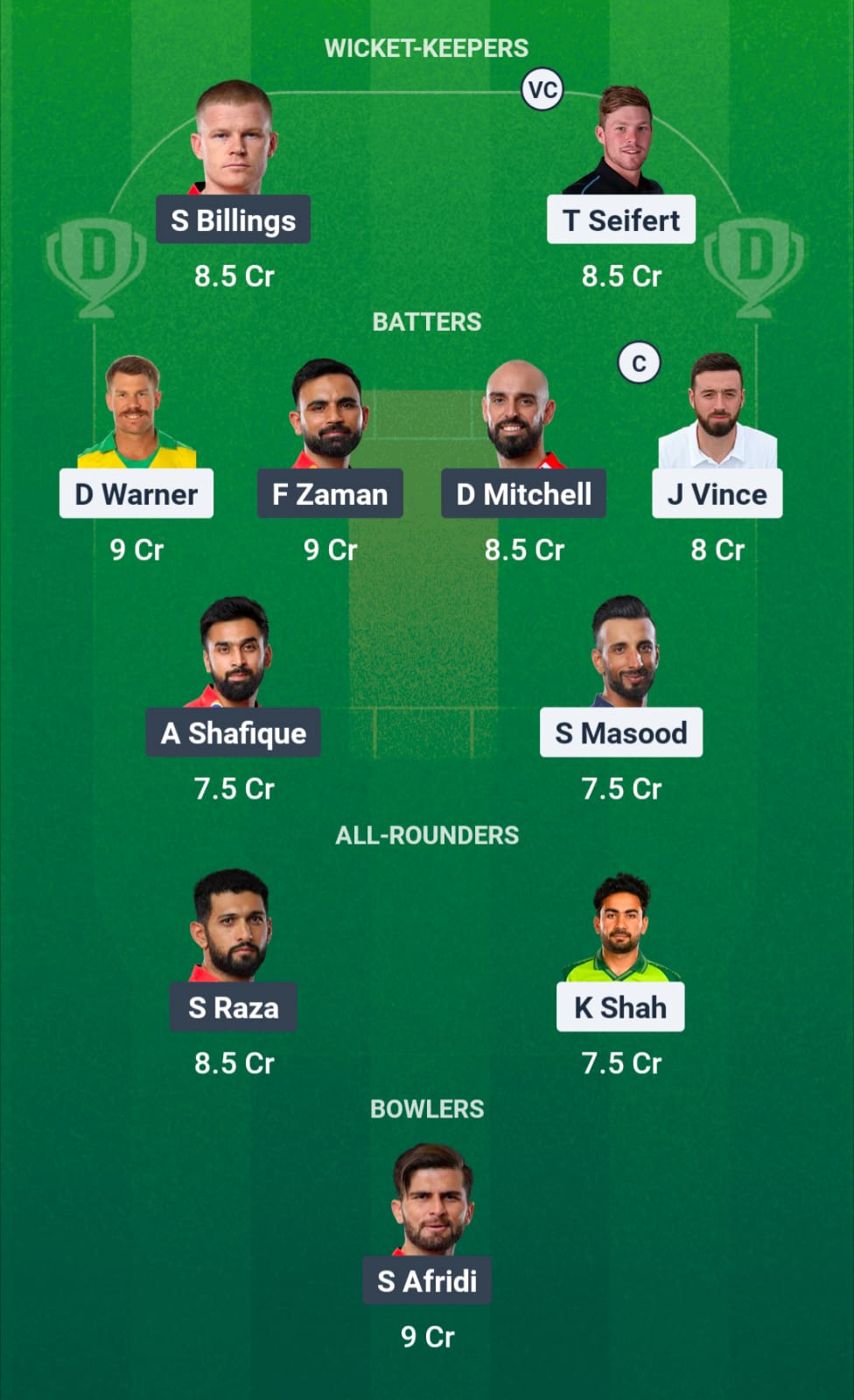 Looking at the conditions, this is where you want to build the bulk of your team from. David Warner, Fakhar Zaman, Daryl Mitchell, James Vince, Abdullah Shafique, Shan Masood, and maybe Mohammad Naeem (if you are keen to be a bit different) are all excellent options. Having them all in the lineup is perhaps not a bad strategy either.