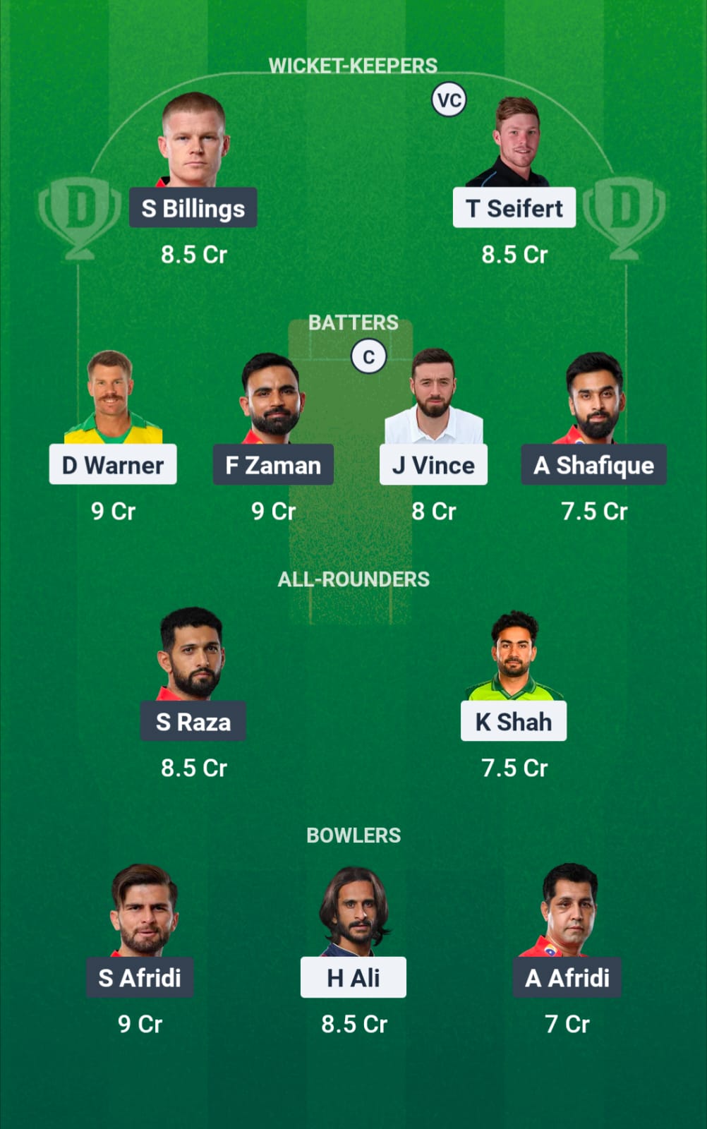 Three excellent overseas players to choose from in this category. Sam Billings, Tim Seifert, and Kusal Perera. The first two are sure starters so having them in the lineup is an easy choice to make.