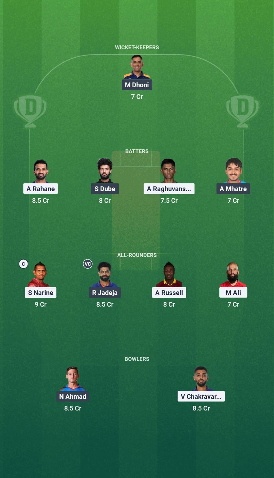 Both teams have plenty of all-rounders to choose from. Some of the best-performing all-rounders this season include Sunil Narine, Ravindra Jadeja, and Andre Russell.
