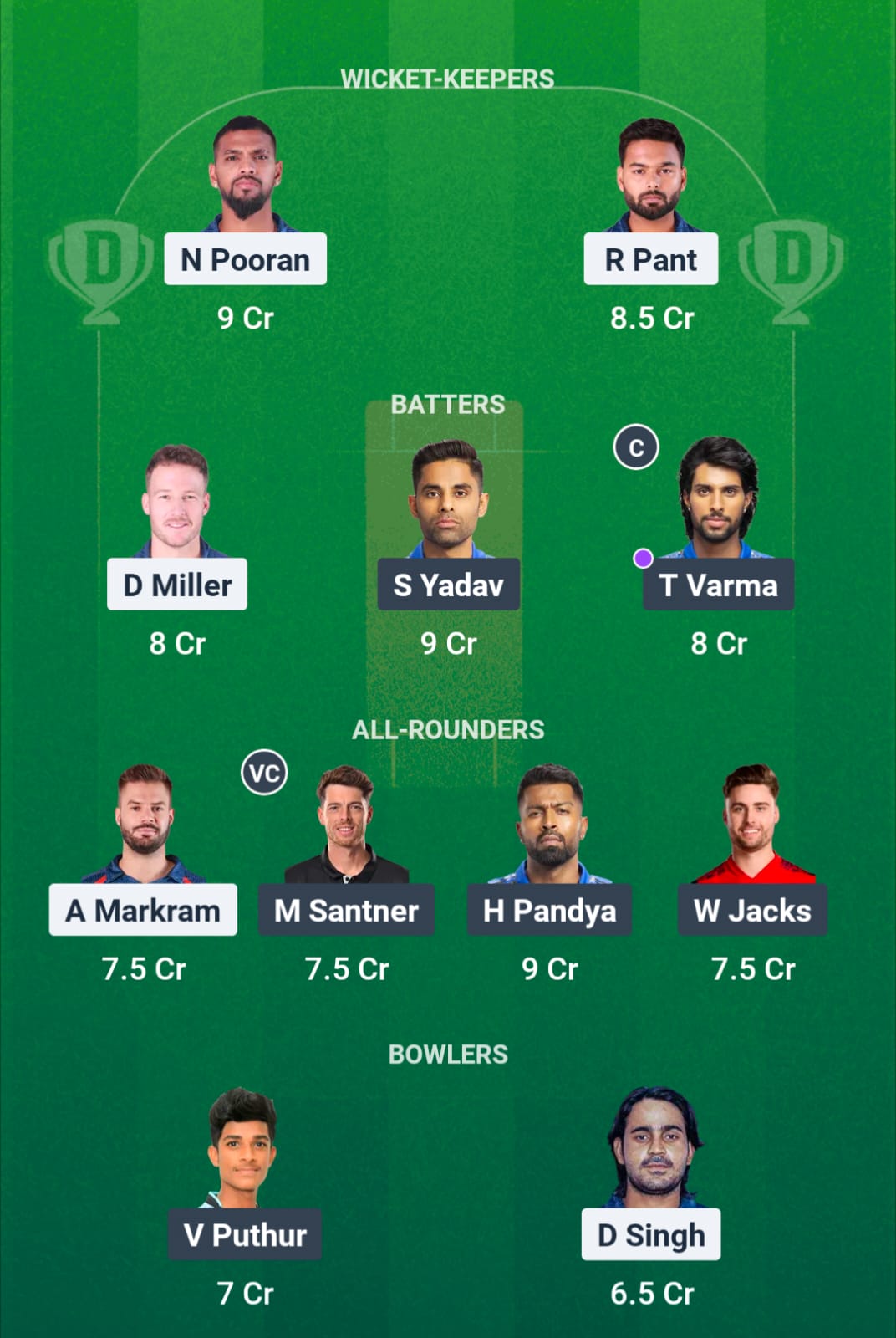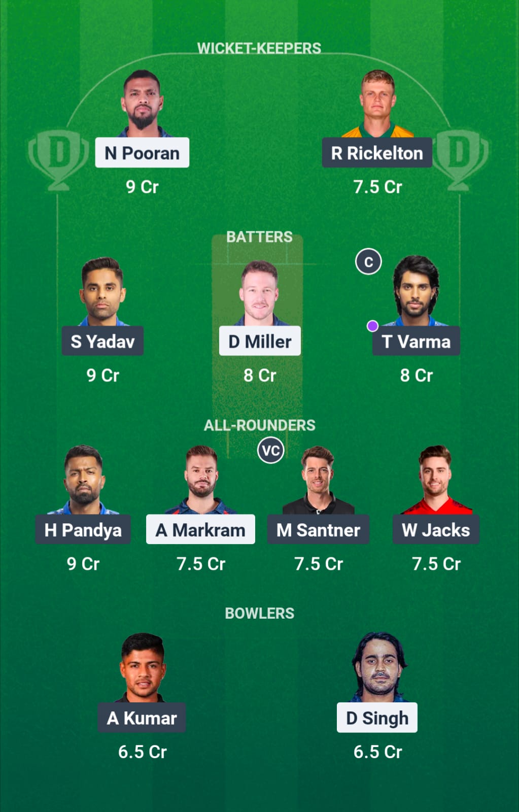 Nicholas Pooran and Ryan Rickleton have done well for their respective teams and have found a place in our playing XI.