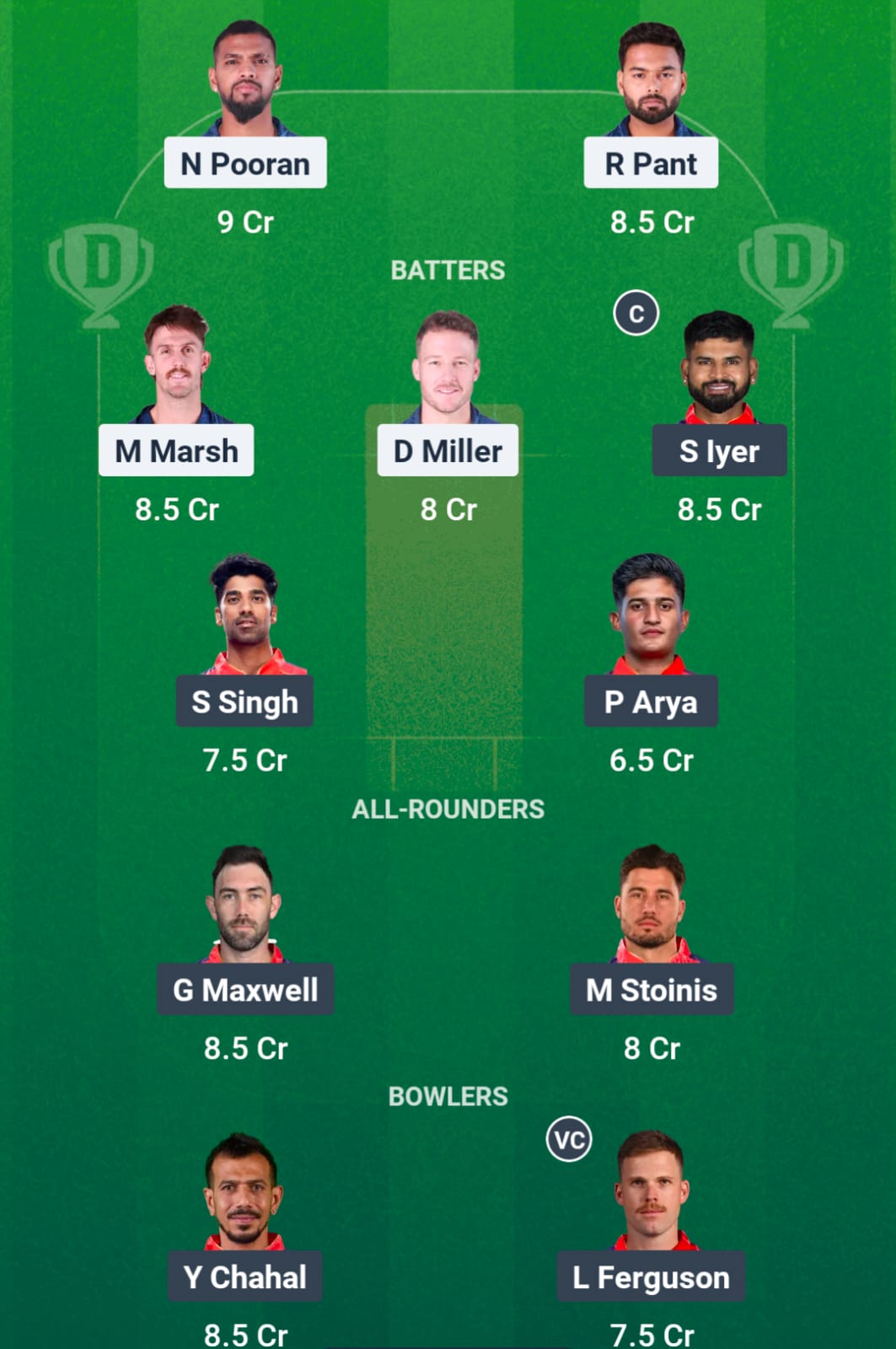 Shreyas Iyer will be a popular choice after falling only three runs shy of his first century of the tournament and what would have been his first IPL century. Priyansh Arya has been brilliant in his IPL debut. Mitchell Marsh hit a half-century before this game. David Miller is an experienced batter who can play spin well.