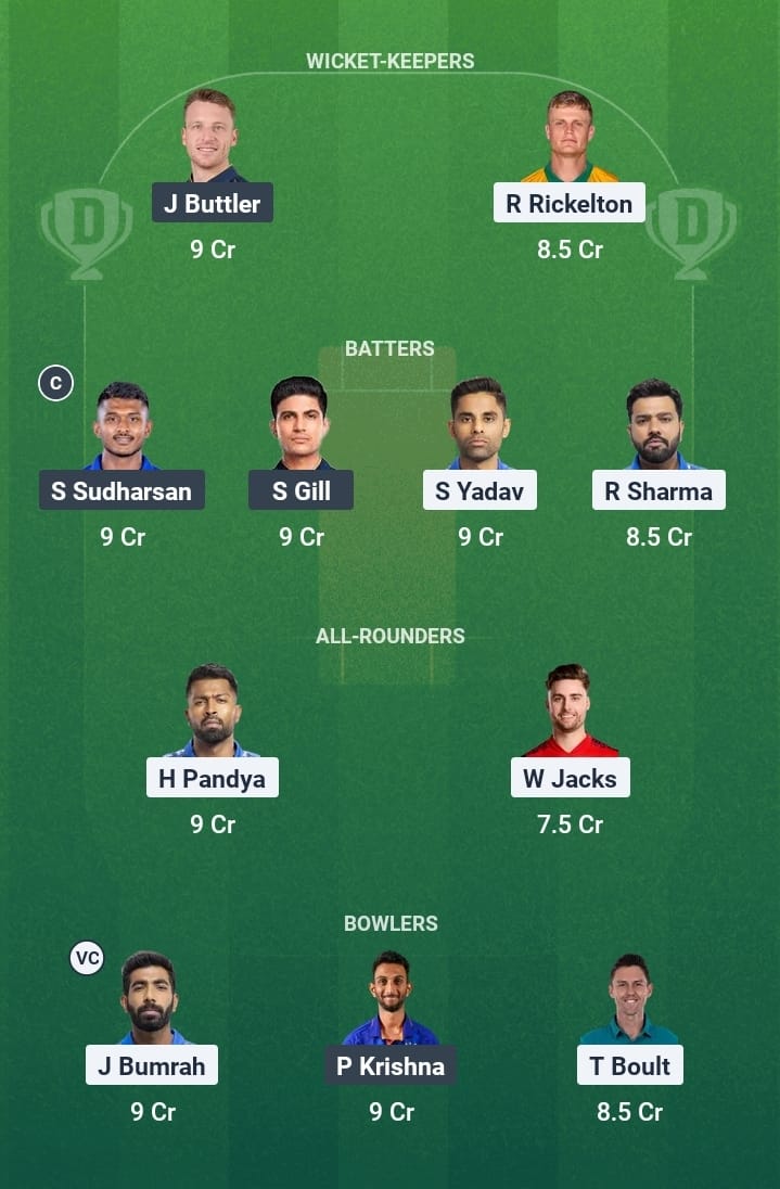 Jos Buttler is currently in great form and performing near his best. He hit 64 runs off 37 balls against Hyderabad. South African wicketkeeper-batter and opener for MI Ryan Rickelton has shone in his debut IPL season. His previous two scores are 58 against Lucknow Super Giants and 61 against Rajasthan Royals.