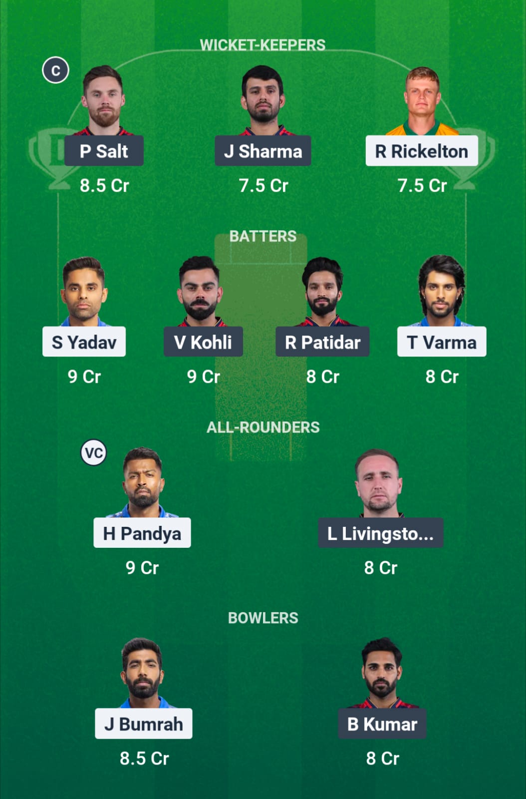 Both teams have quality wicket-keepers in the form of Phil Salt and Ryan Rickleton. Jitesh Sharma has also been a consistent performer in the IPL and can be included in the XI.