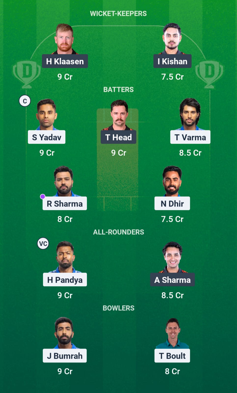 Leg-spinner Karn Sharma is in form after a bucket load of wickets when he played against DC. Harshal Patel of SRH has taken ten wickets in his past six IPL matches. World-class pacers such as Jasprit Bumrah and Pat Cummins will do battle against each other on the field, but will be a phenomenal combo in your team list.