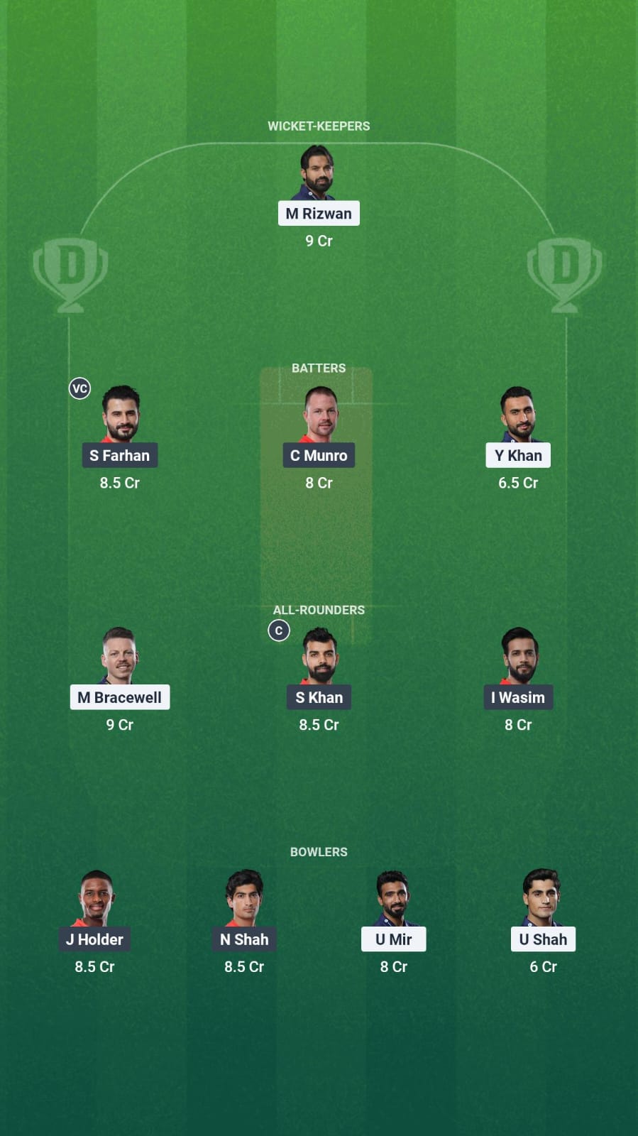 Since the pitch is expected to be batsmen-friendly, we are going with plenty of batsmen for our team. These include Sahibzada Farhan, Colin Munro, Yasir Khan, and Iftikhar Ahmed.