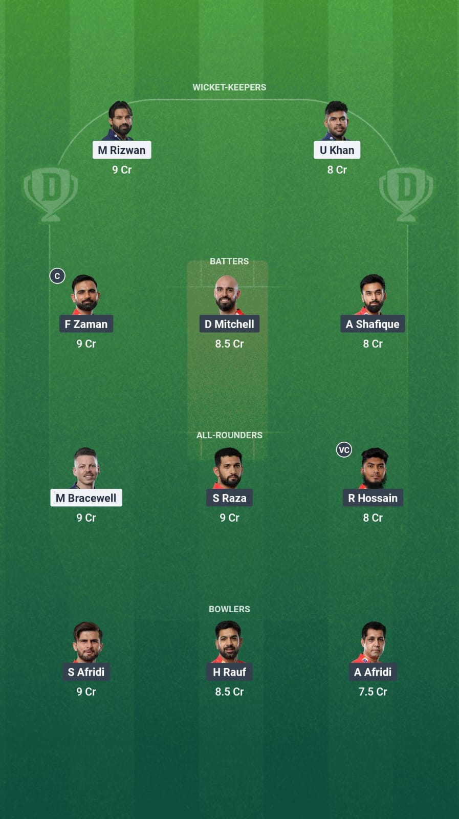 As the pitch allows the batsmen to play their shots freely, we are picking up some quality players here. Fakhar Zaman has scored back-to-back half-centuries and made it to our team. We are also picking up Daryl Mitchell and Abdullah Shafique.
