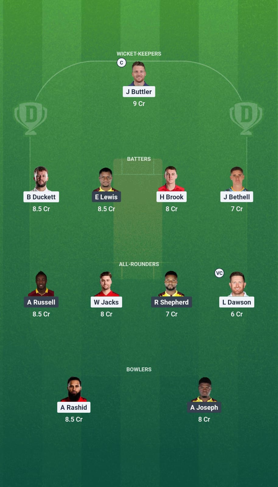 The seamers are likely to get some help here thanks to the grass on the pitch. We are therefore selecting Alzarri Joseph and Matthew Potts. Adil Rashid makes it in the team as a specialist spinner.
