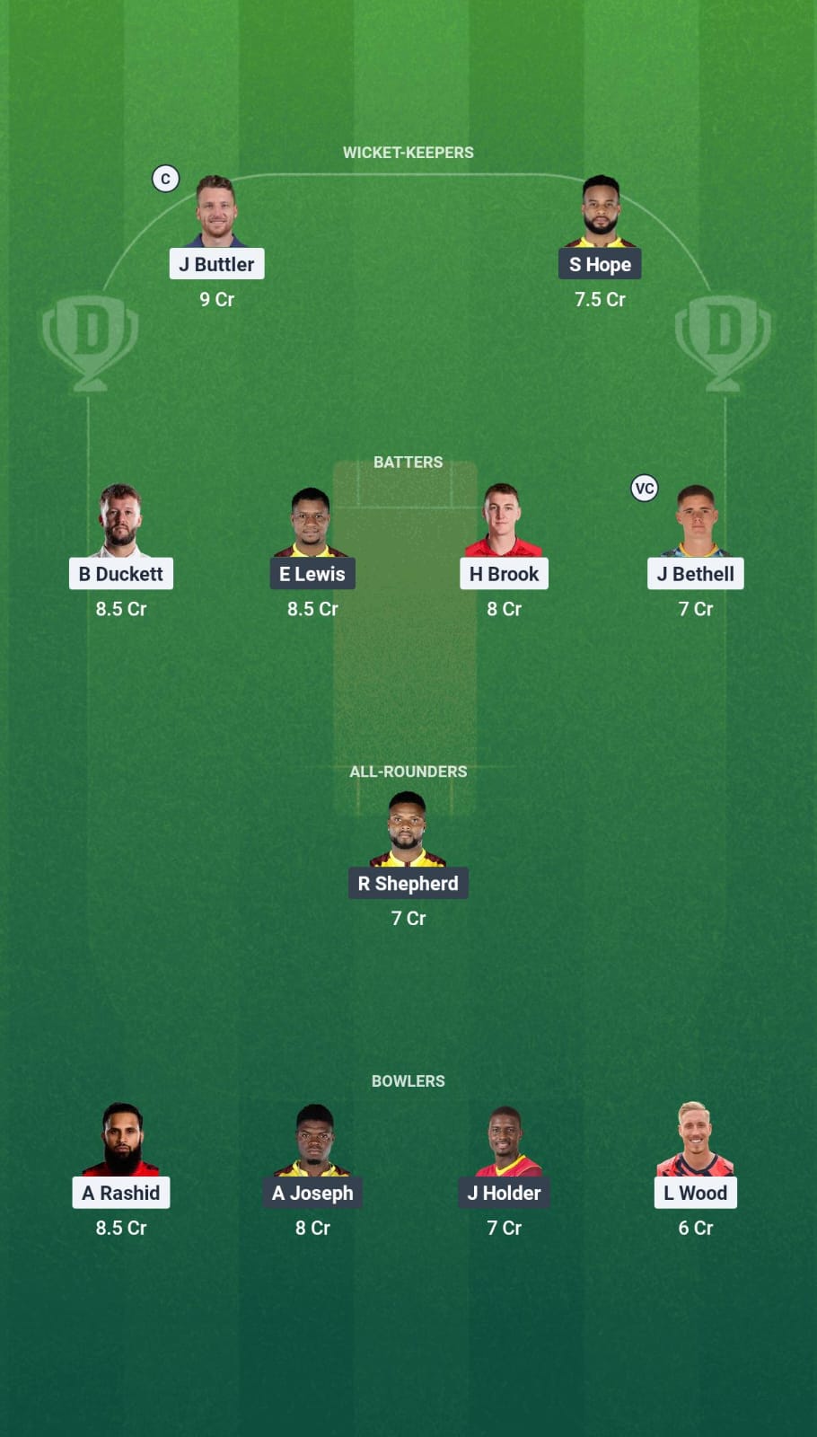 As the pitch is likely to help the seamers, we are picking up three quality seamers Luke Wood, Alzarri Joseph, and Jason Holder