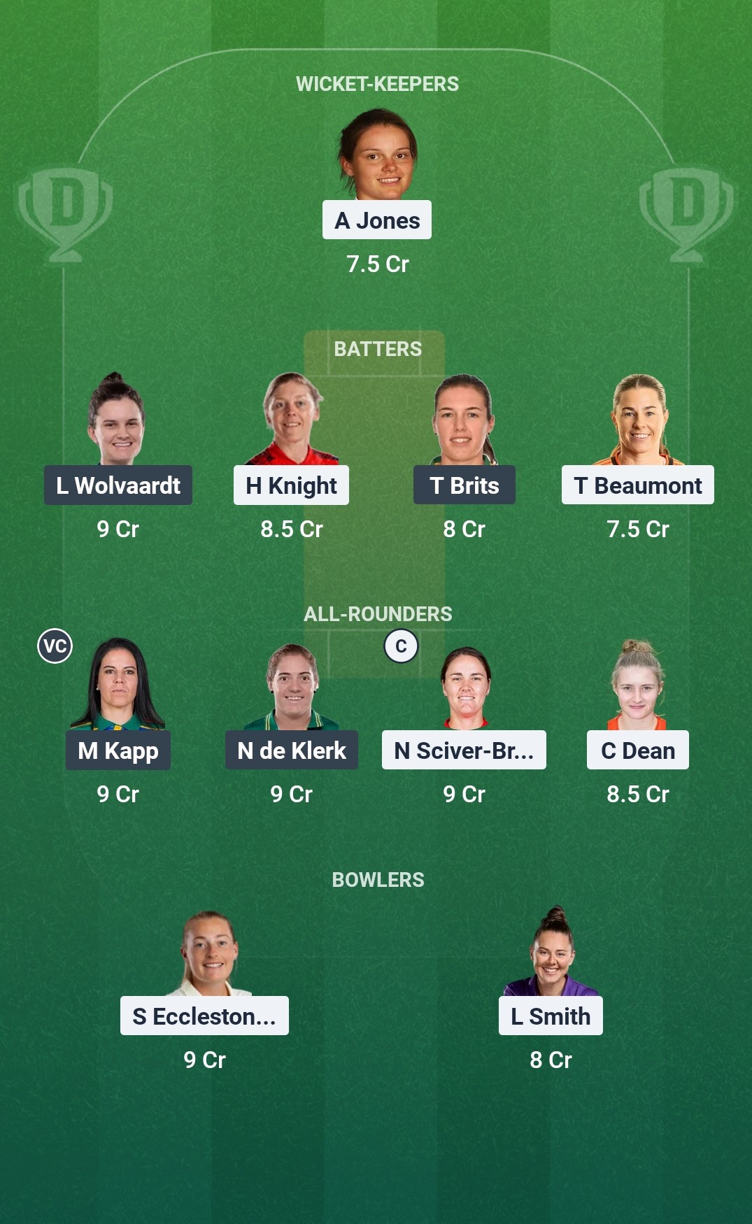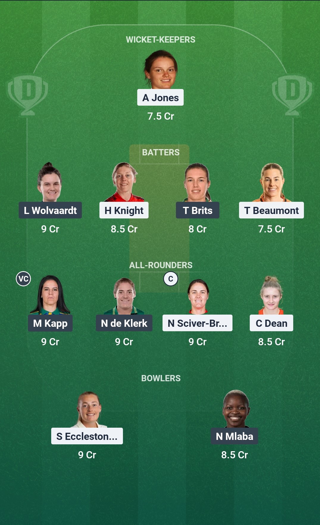 We recommend Marizanne Kapp, with her vast experience and all-round prowess, to be the vice-captain of this side.