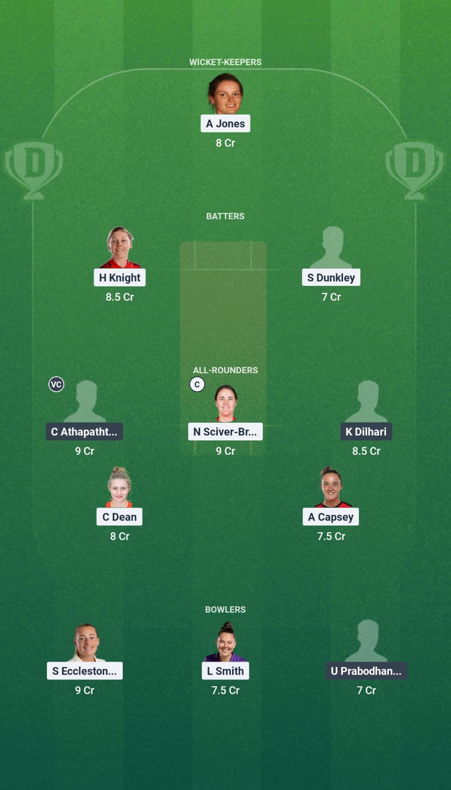 Heather Knight played a brilliant knock in the previous match and is the top pick in this category. We are also selecting Sophia Dunkley, given her experience in the white-ball format.