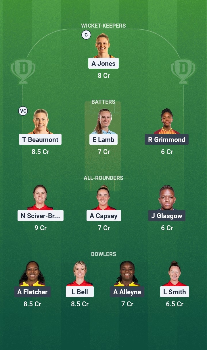 You can expect Tammy Beaumont, Emma Lamb, R. Grimmond, and Sophia Dunkley to be the top batters in this encounter.