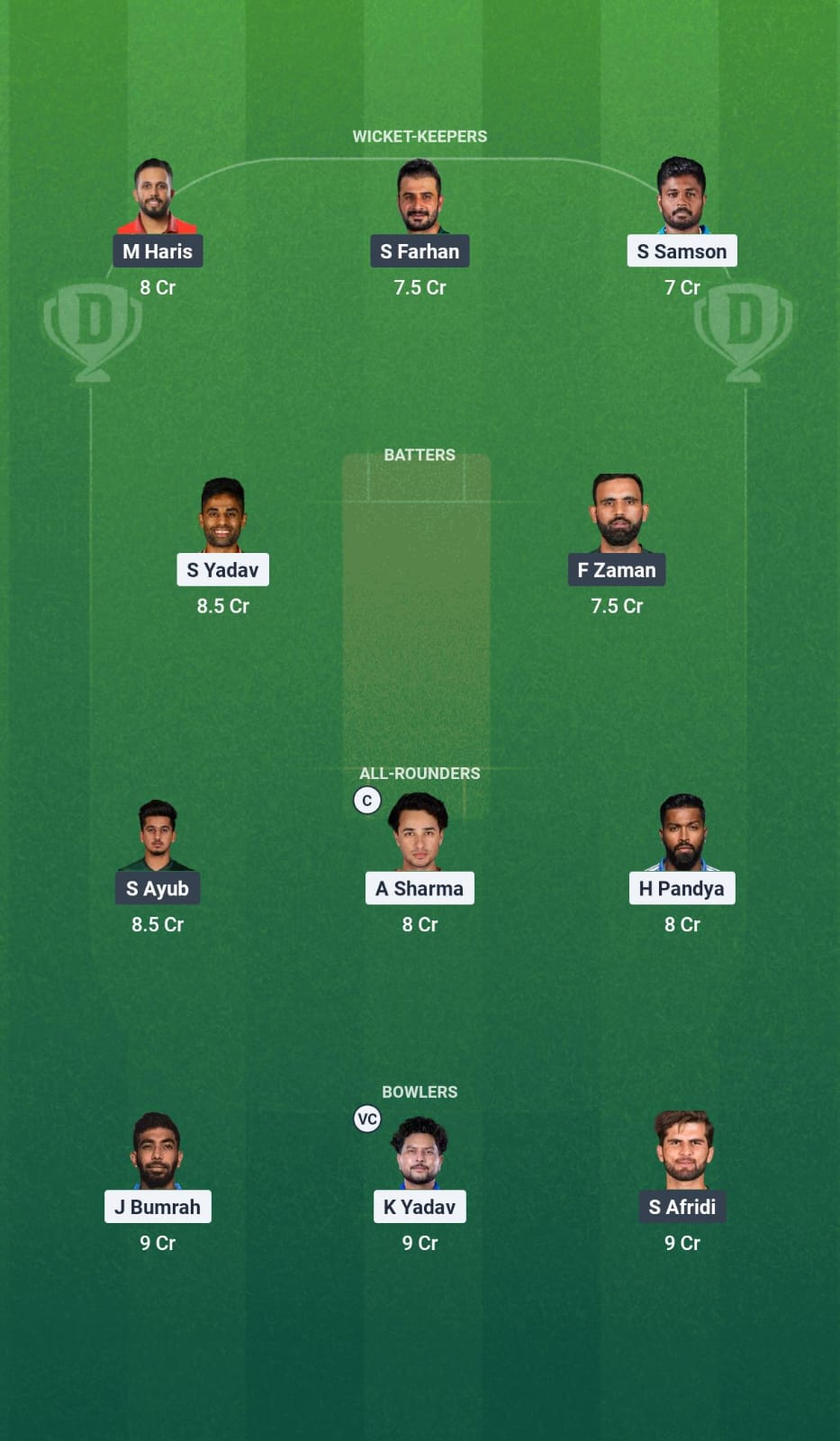Sanju Samson played an important knock in the previous match, and we are selecting him for our playing XI. Sahibzada Farhan and Mohammad Haris are two of the most consistent batsmen for Pakistan in this tournament, and they also made it to our side.