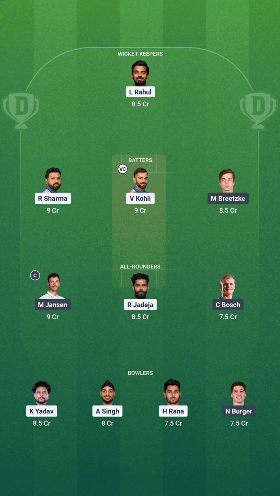 Virat Kohli scored a brilliant century on Sunday and is our top pick. We are also bringing in Rohit Sharma and Matthew Breetzke, as they both batted well.