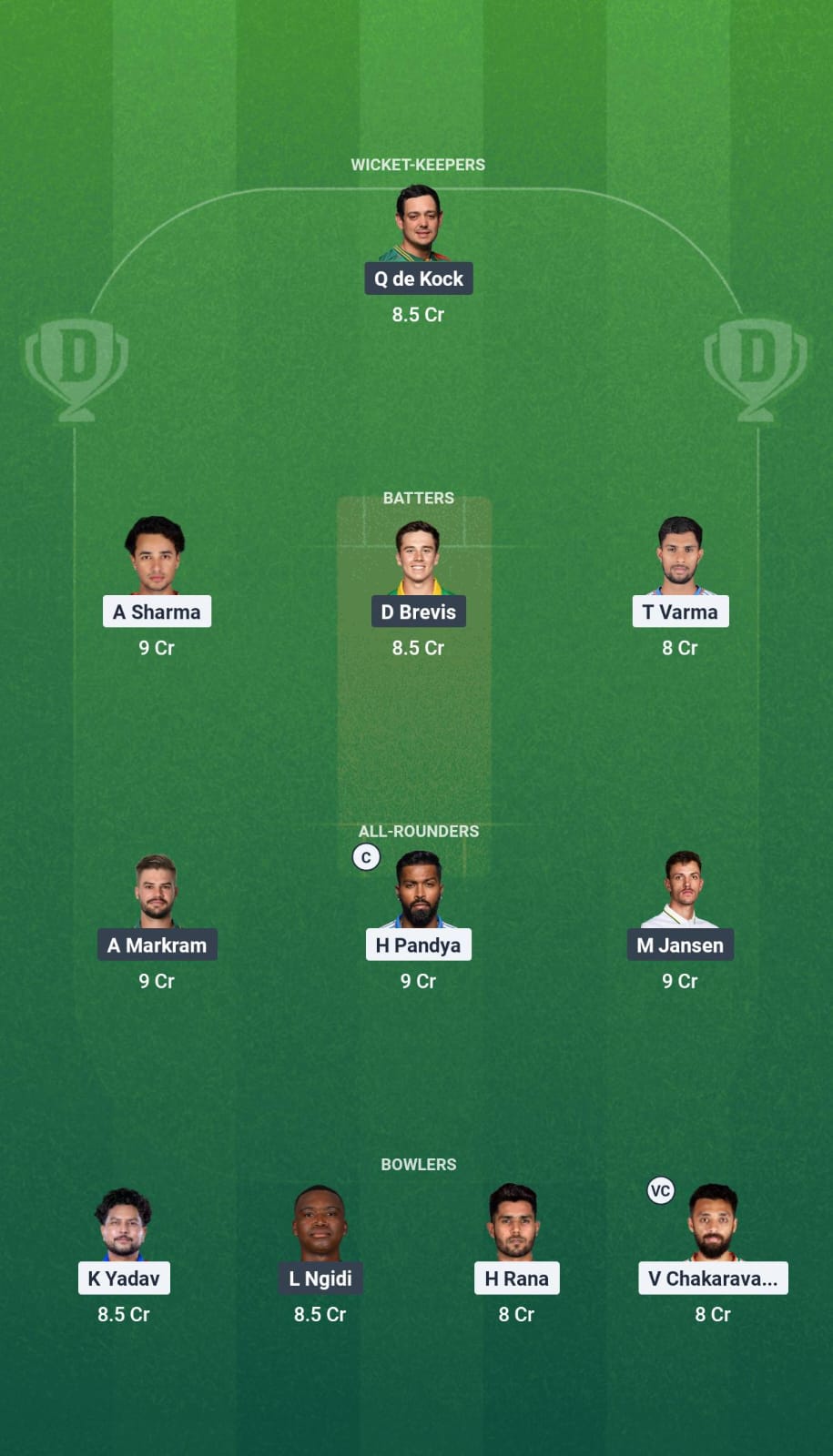 Both teams have some excellent all-rounders to choose from, and we are bringing in Hardik Pandya, Aiden Markram, and Marco Jansen.