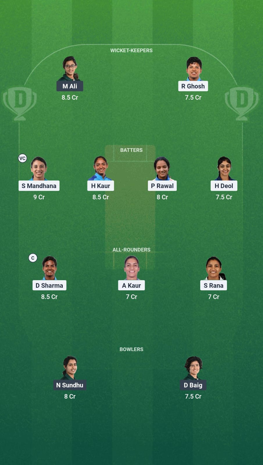 Deepti Sharma and Amanjot Kaur were both in excellent form in the previous match. We are also selecting Fatima Sana for this game.