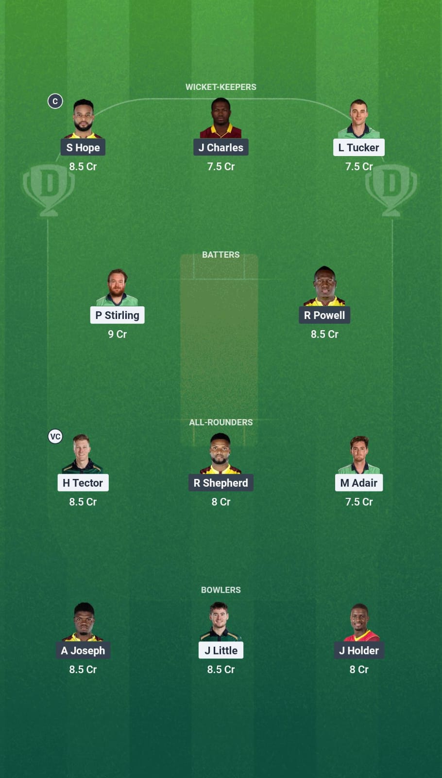Both teams have some good all-rounders playing for them and we are selecting Harry Tector, Mark Adair, Romario Shepherd, and George Dockrell
