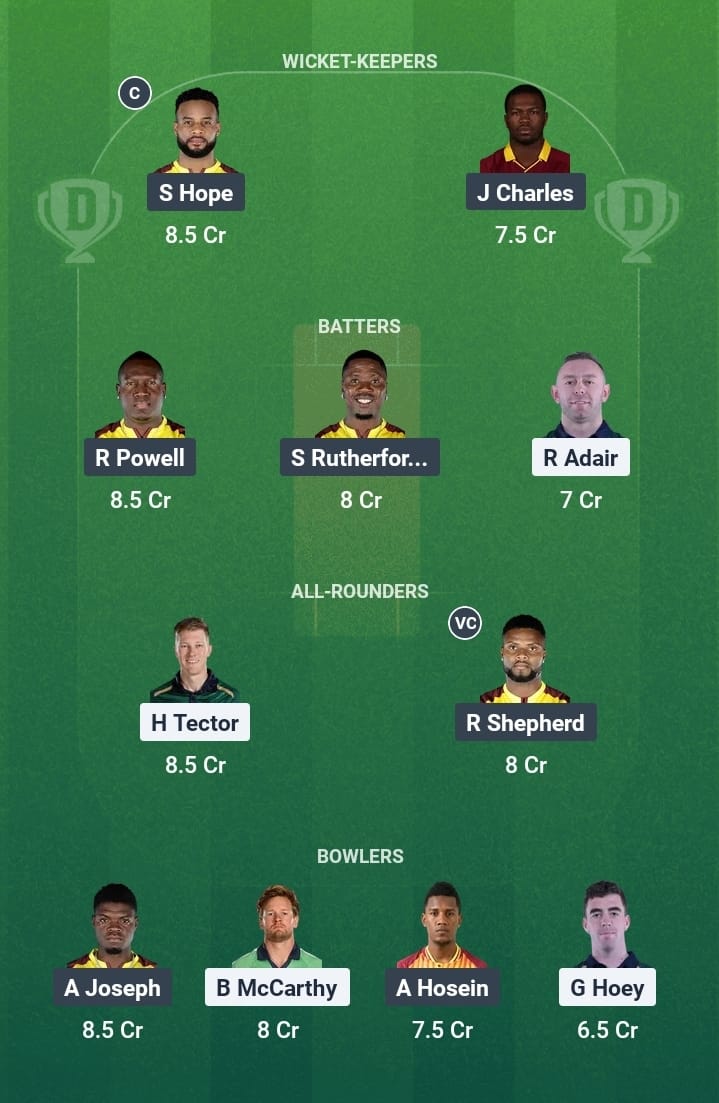 Right-arm medium-fast bowler Barry McCarthy is a reliable bowler for his national team. He brings clever skills in the white-ball formats. His best T20 bowling figures are five for three. Leg-spinner Gavin Hoey has yet to make his international T20 debut. This could be the day with 27 T20 wickets in his pocket. Akeal Hosein is commonly known for his flight and drift among other clever tactics that spinners use.