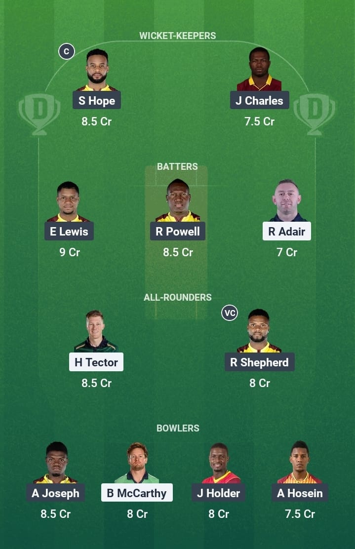 Ross Adair has worked his way through the Ireland age-group ranks. The powerful right-hander currently has a strike rate just under 150. Harry Tector is a promising young talent with bat in hand. He is easily one of the modern prospects in Irish cricket with nine half-centuries at T20 level. Power-hitting Jamaican Rovman Powell has captained the West Indies T20I side before and is known for his aggressive leadership in white-ball cricket. Powell has a T20I hundred.