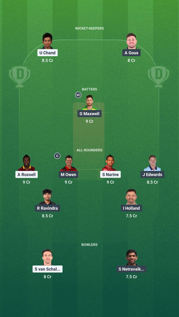 Unmukt Chand is the leading run-scorer for the Los Angeles Knight Riders and is the obvious choice here. We are also selecting Andries Gous after his half-century in the previous match.