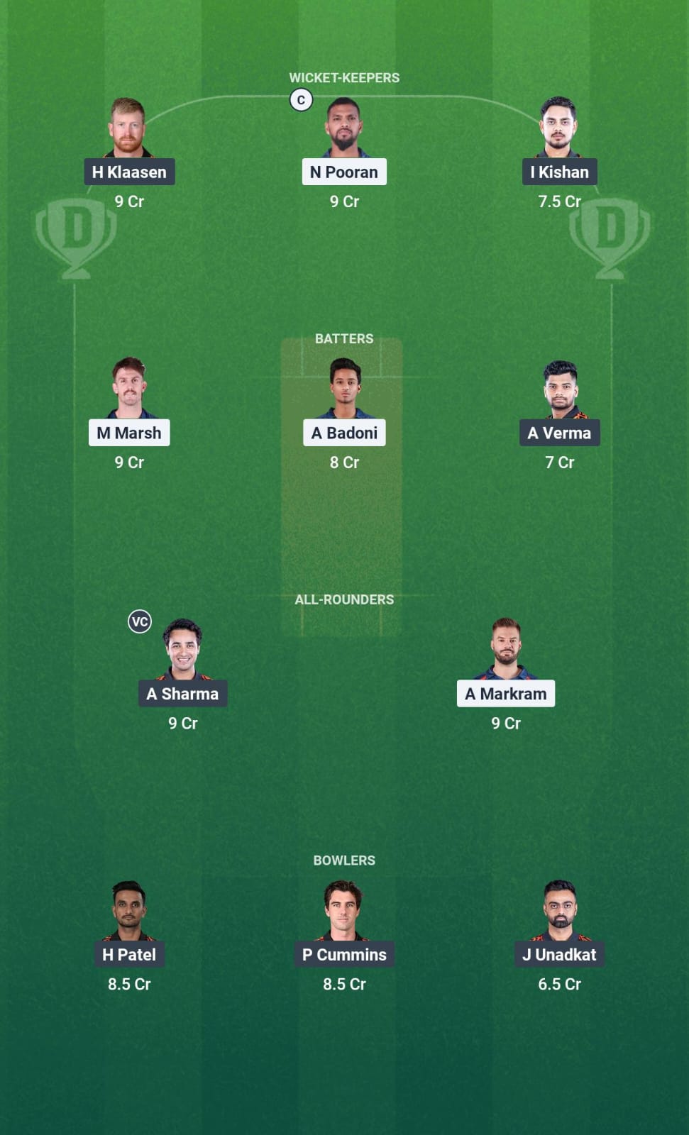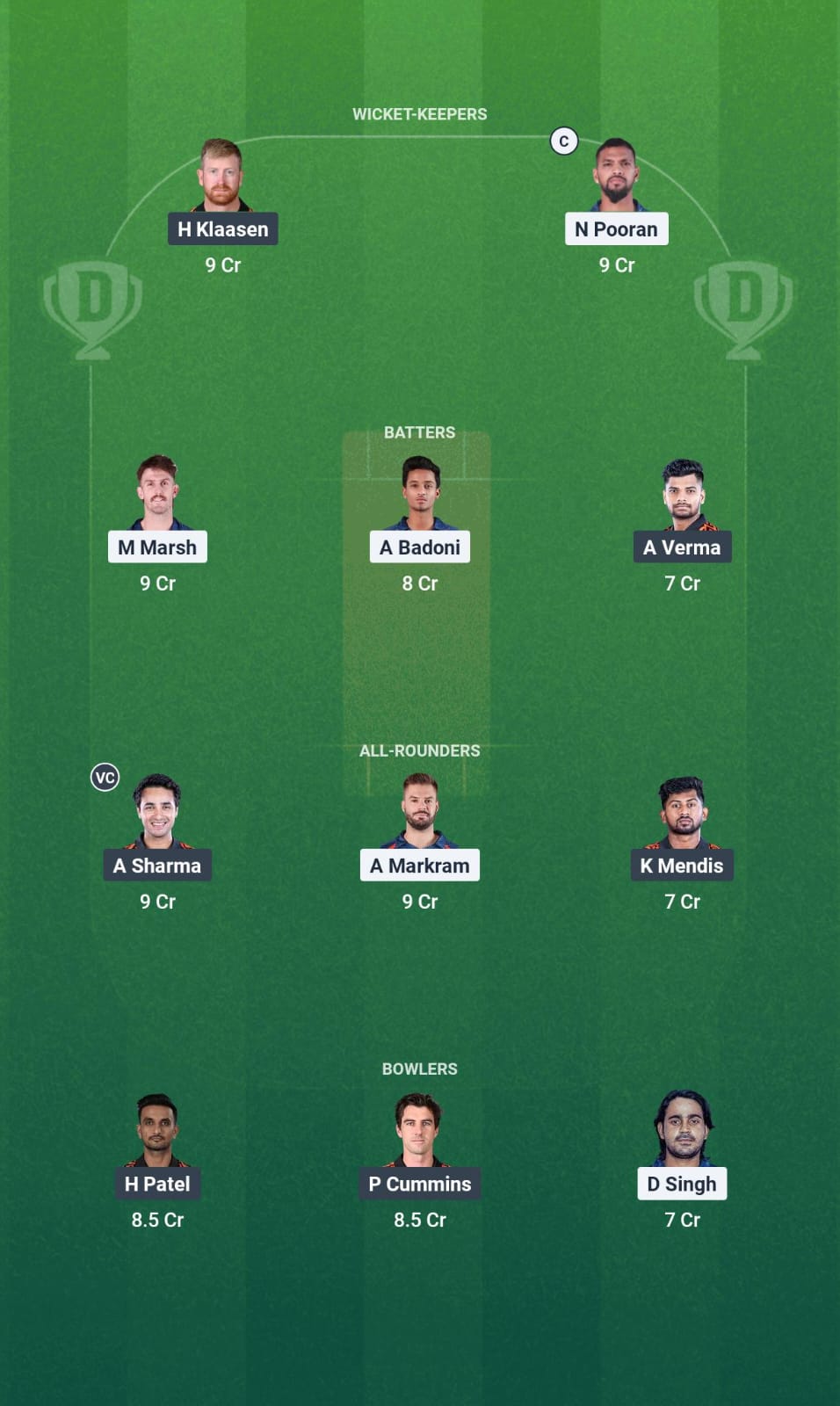 As all three all-rounders we have picked up are slower bowlers, we have selected Pat Cummins and Harshal Patel to lead our new-ball attack. We are also opting for Digvesh Rathi as he has been consistent throughout the season.