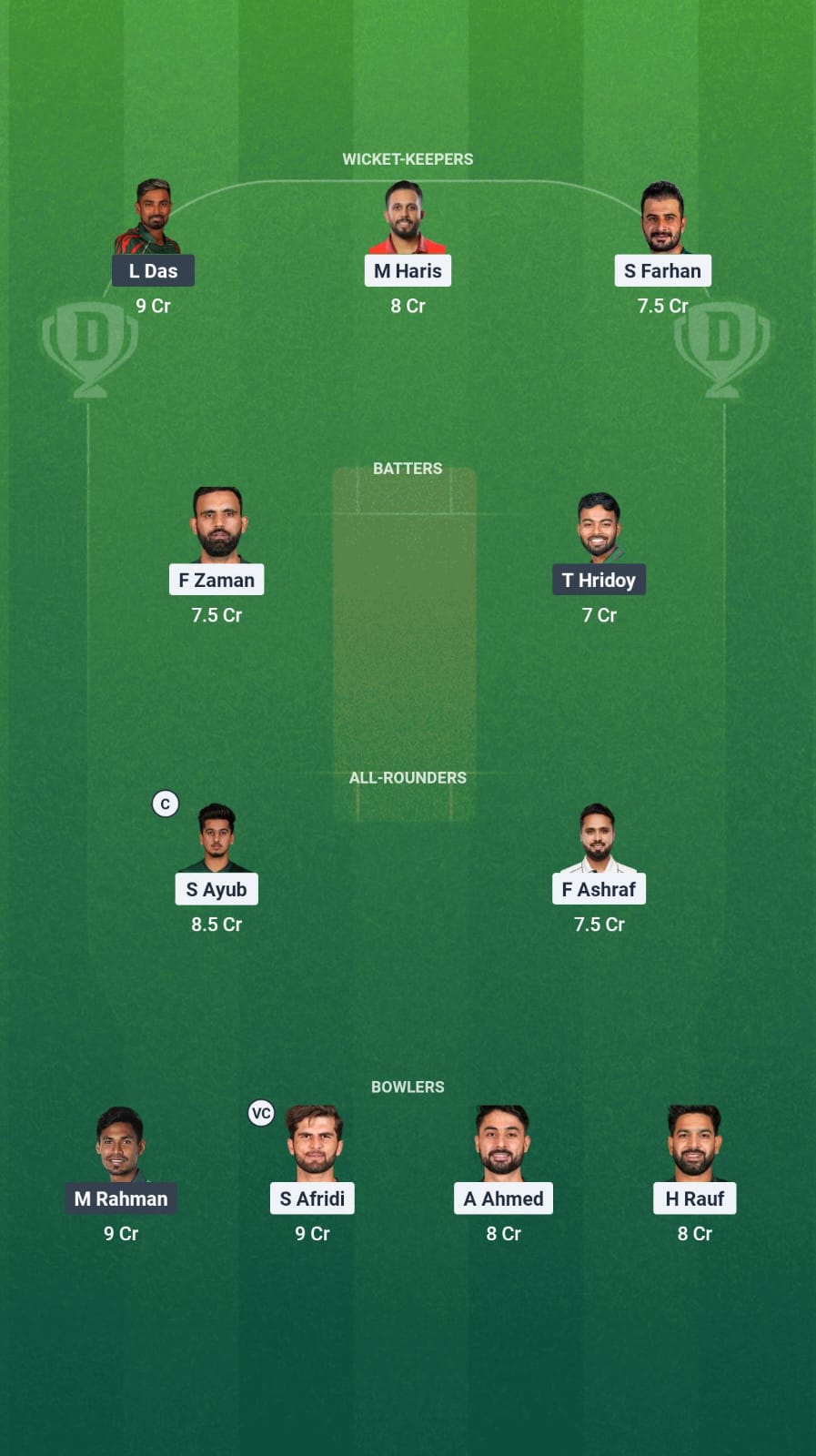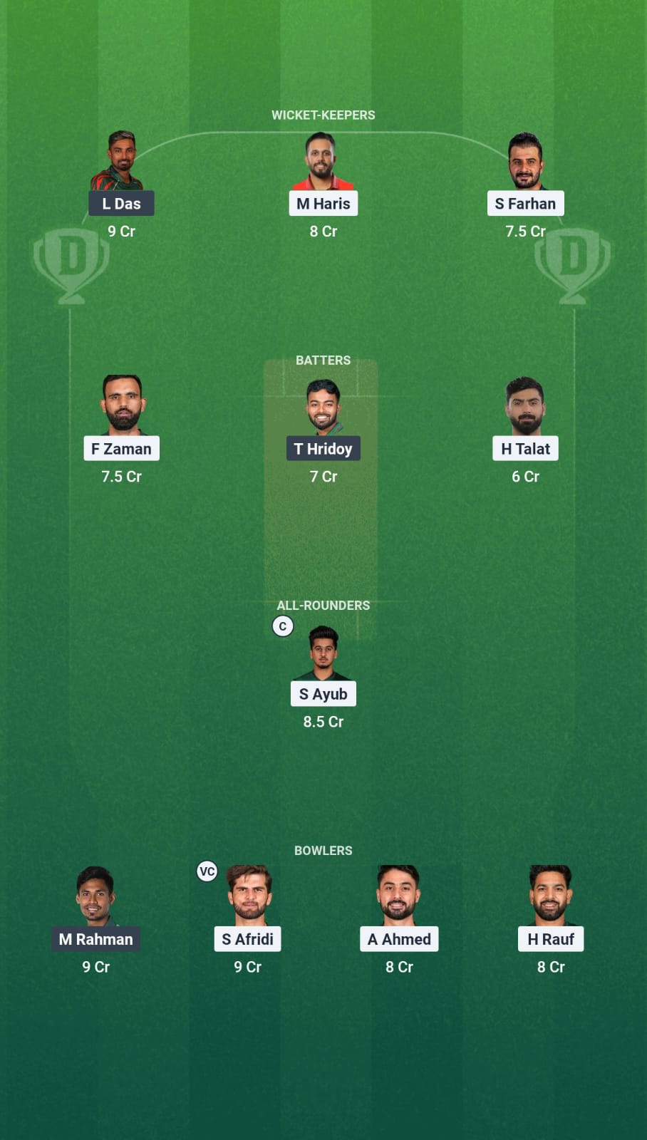 Fakhar Zaman and Towhid Hridoy are both solid batsmen in the middle order. We are also including Hussain Talat after his excellent batting in the previous match.