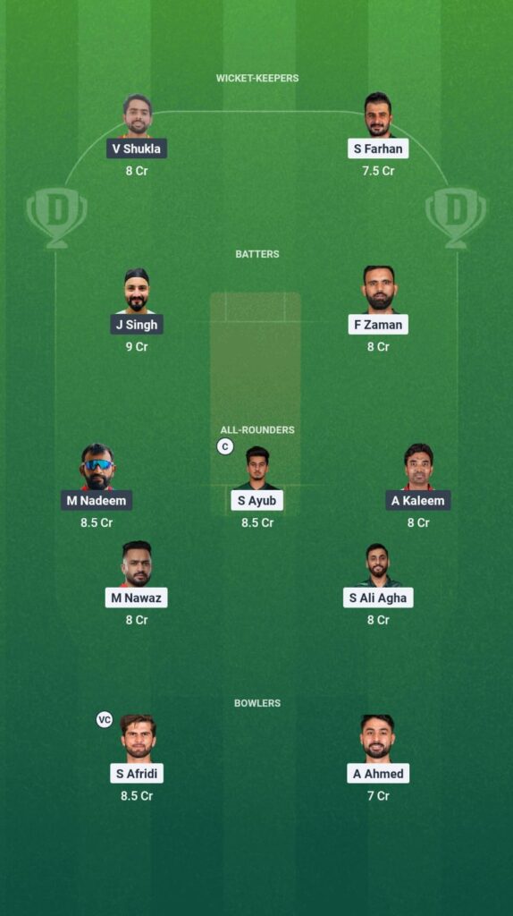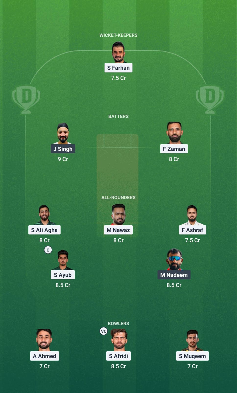 Both teams have plenty of all-rounders to choose from. Our top picks include Saim Ayub, Mohammad Nawaz, Mohammad Nadeem, and Salman Agha.
