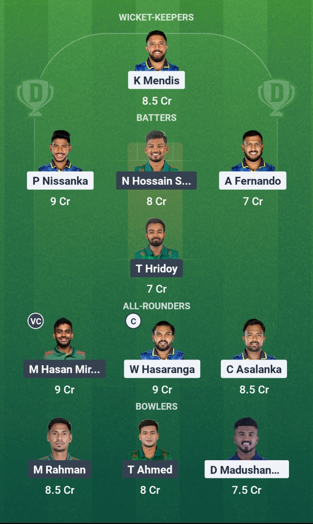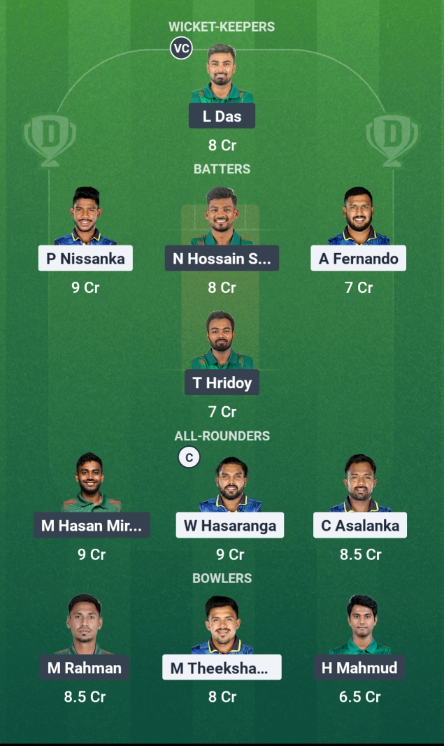 There are some good all-rounders on both teams, such as M Hasan Miraz, W Hasaranga, and C Asalanka.