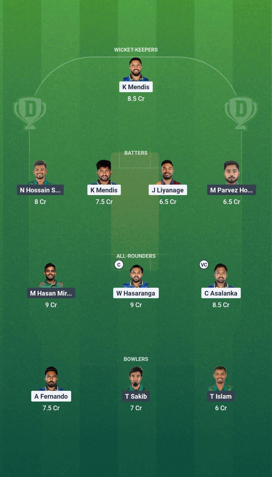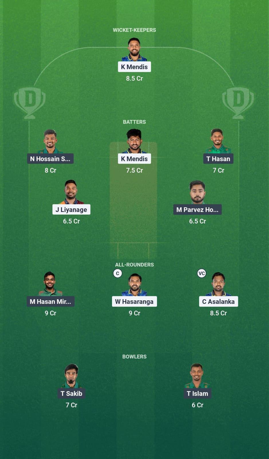 Both teams have some quality all-rounders to choose from. We are going with Wanindu Hasaranga, Charith Asalanka, and Mehidy Hasan Miraz.
