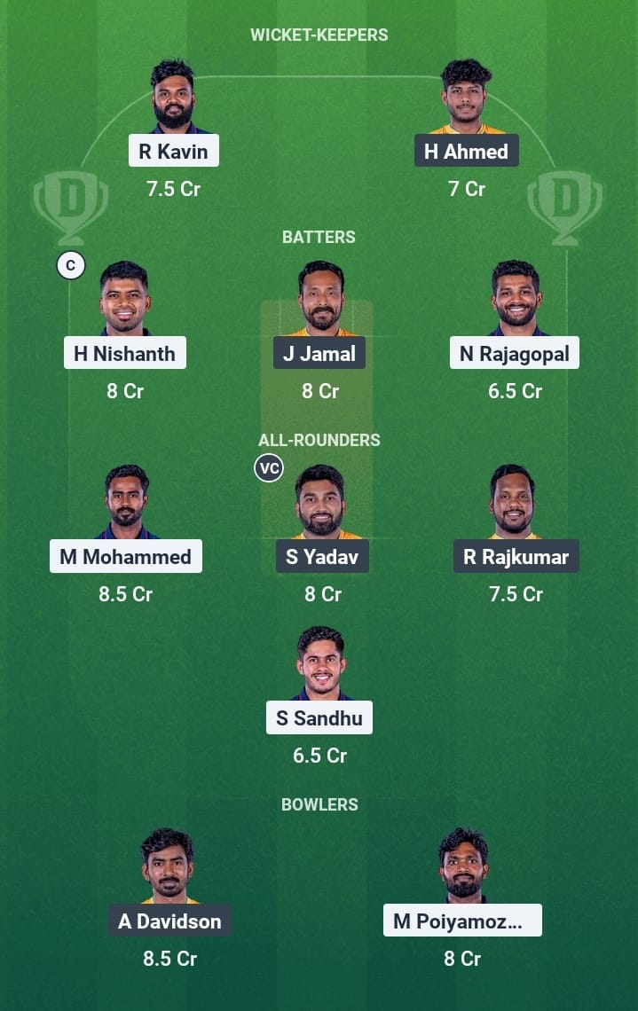 S Abishiek (c), Hari Nishaanth, Nidhish Rajagopal, R Kavin (wk), Rajendran Vivek, Sunny Sandhu, Mohammed Mohammed, M Poiyamozhi, ME Yazh Arun Mozhi, Rahil Shah, Ajith Ram