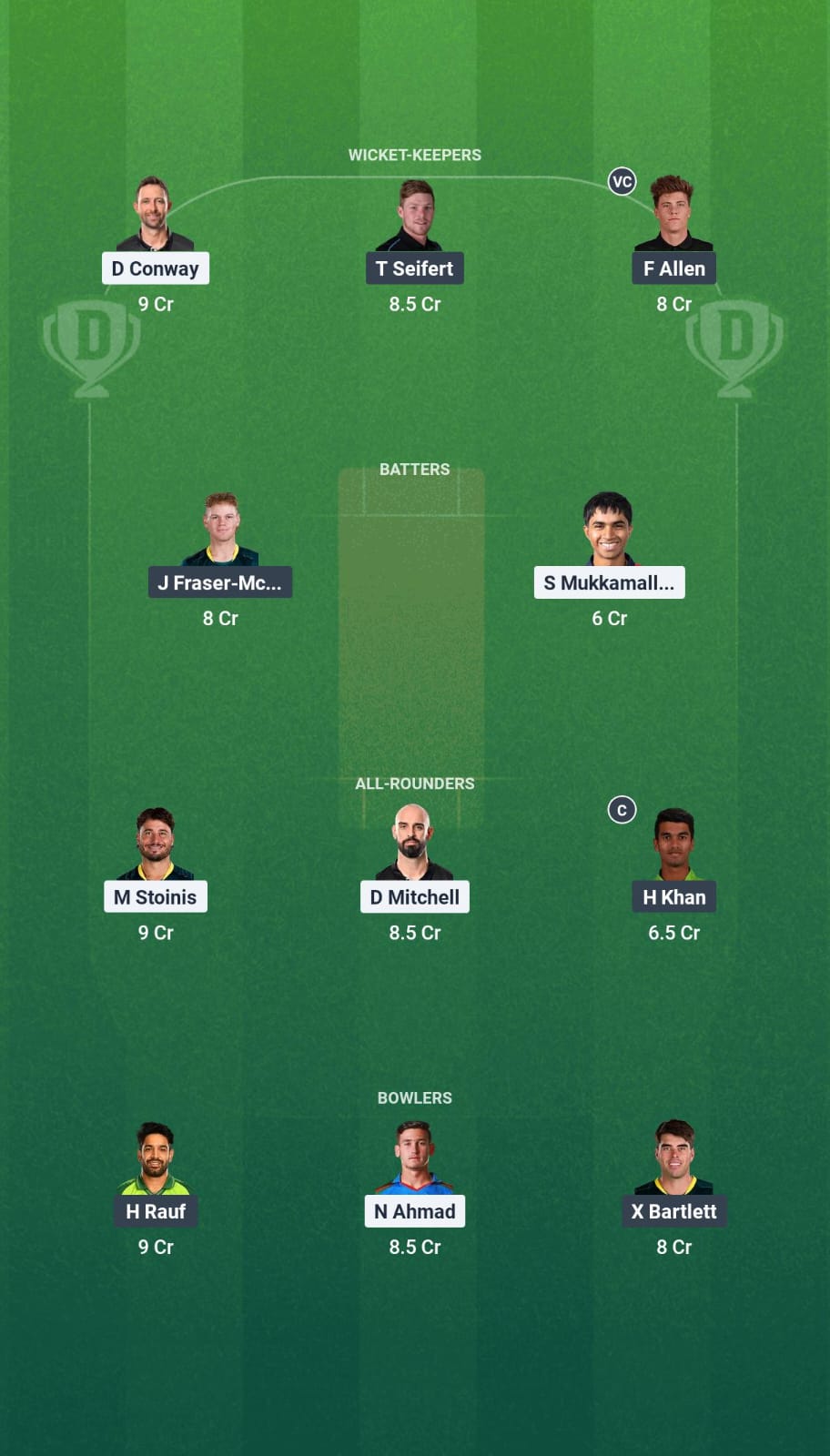 Daryl Mitchell and Hassan Khan have contributed with the bat and the ball and are the top choices here. We are also picking Marcus Stoinis given his experience.