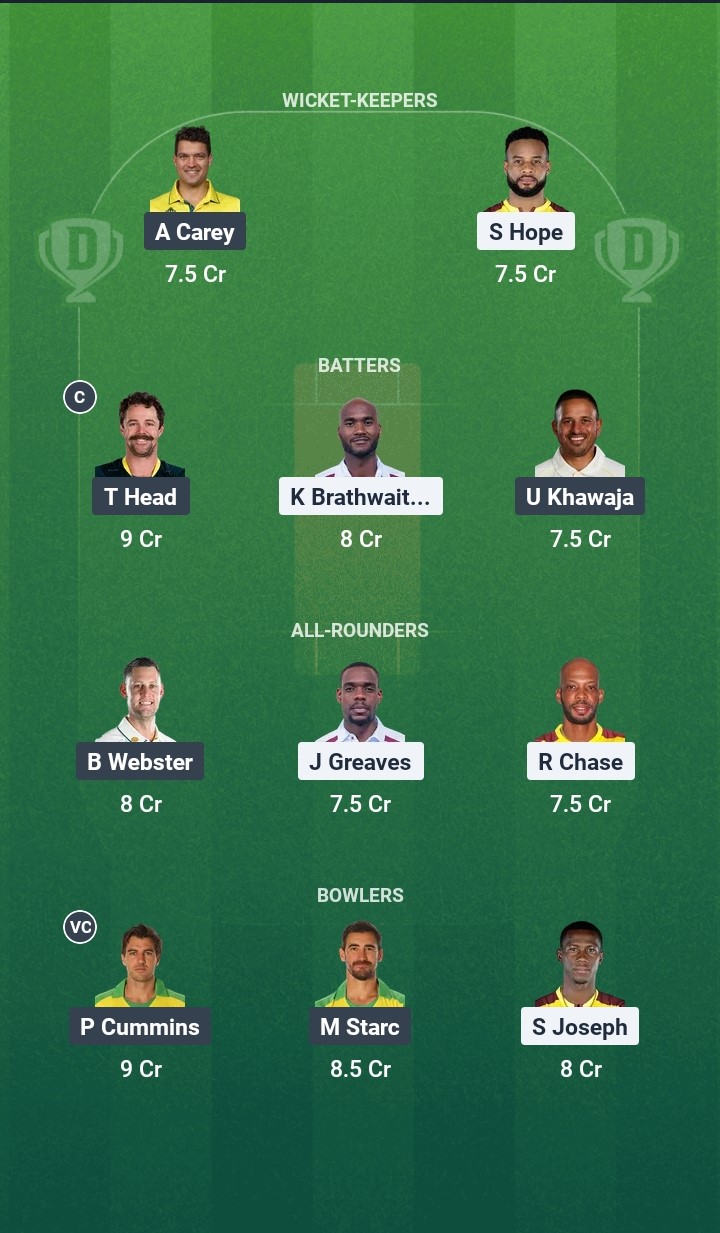WI vs AUS Dream11 Prediction Today | Fantasy Cricket Tips, Playing XI, Pitch Report – Australia Tour of West Indies, 2nd Test.
