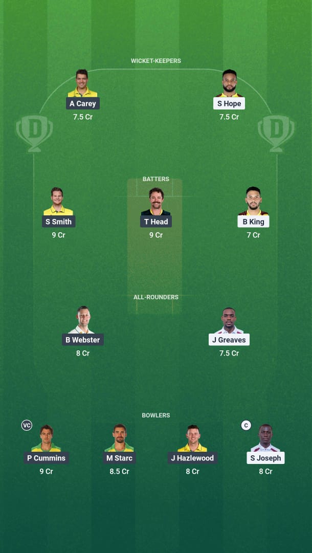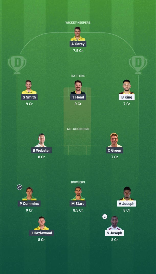 Travis Head, Steve Smith, and Brandon King are our top picks. While the batting in this series has been pretty ordinary, these three have the potential to play a long and big innings.