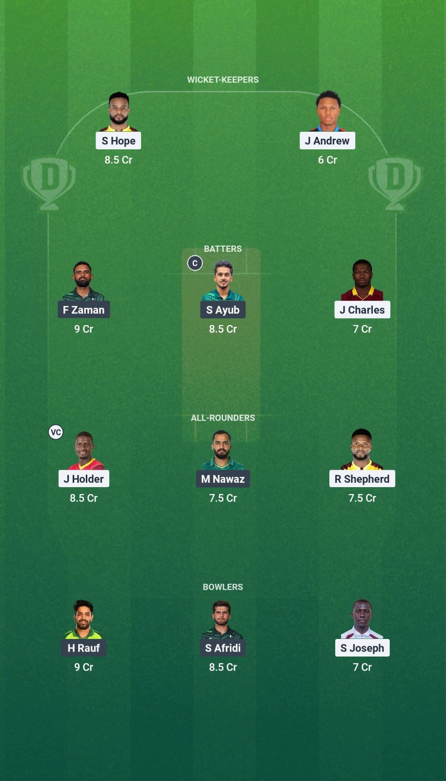 Both teams have some quality all-rounders to choose from. Our choices here include Jason Holder, Mohammad Nawaz, and Romario Shepherd.
