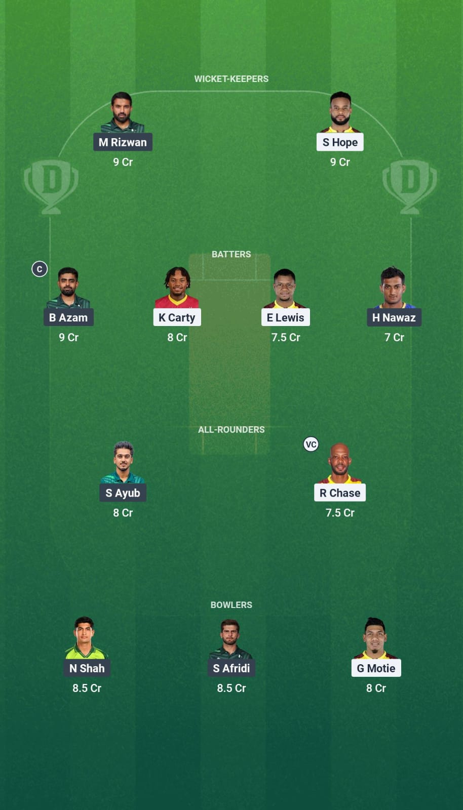 We are nominating Roston Chase as the vice-captain of our team. He was in excellent form with the bat in the previous match and is also a dependable bowler during the middle overs.