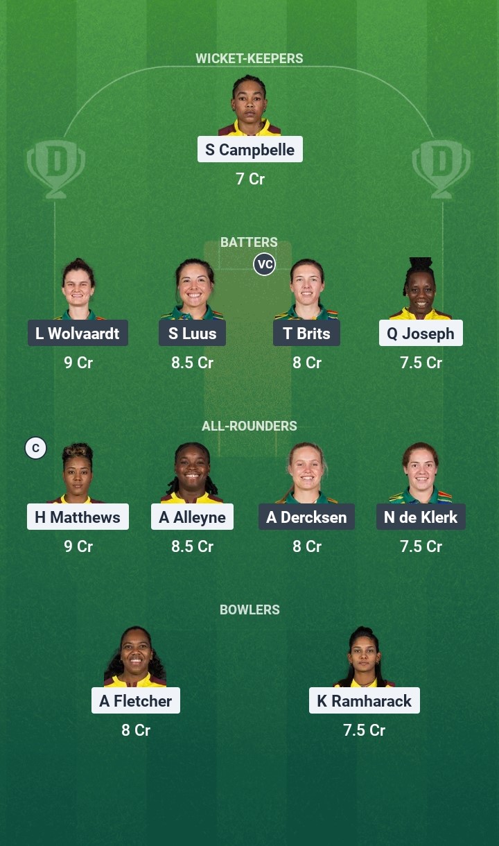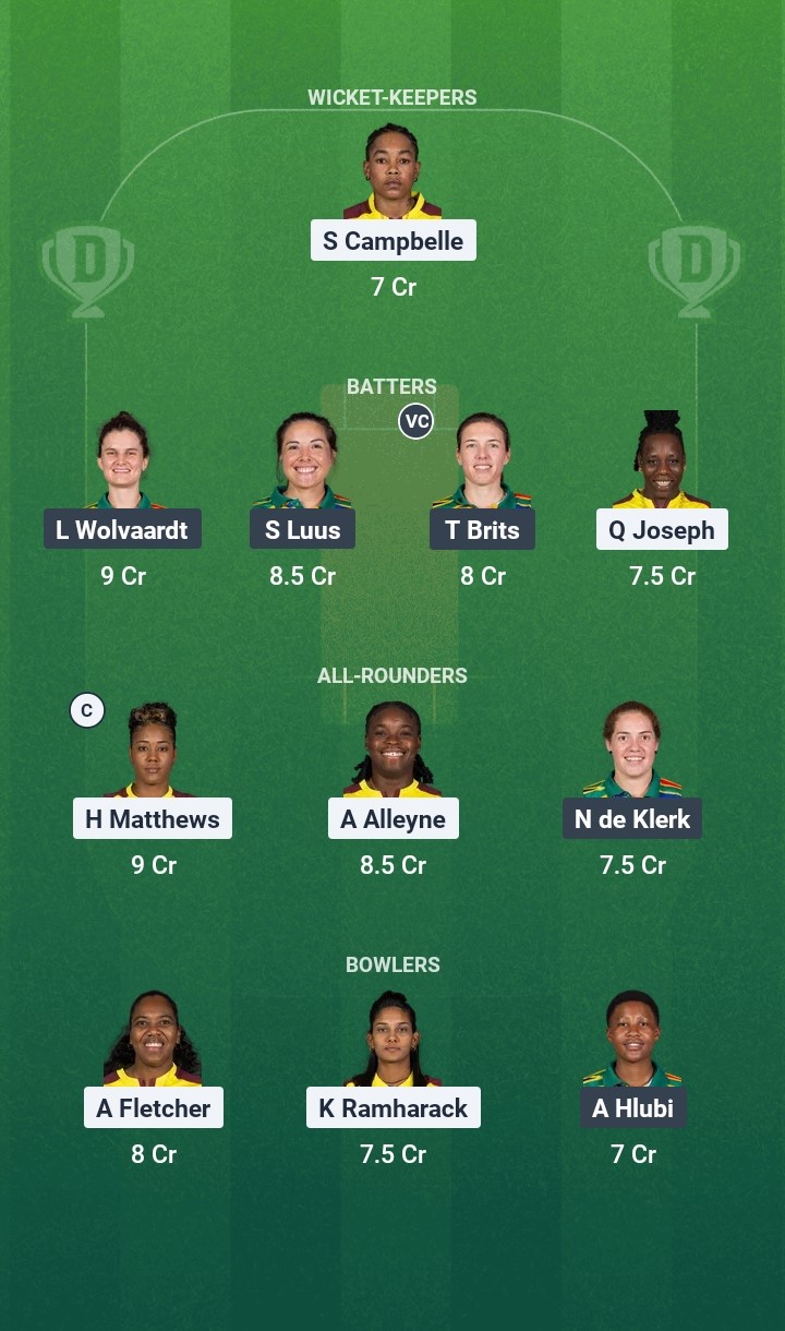 Even though there are several good all-rounders on both teams, Hayley Matthews remains the best of the lot. Marizanne Kapp had a quiet first game and might return to good form in this encounter. There are some other contenders for these slots, such as Nadine de Klerk, Chinelle Henry, Chloe Tryon, and Aaliya Alleyne.
