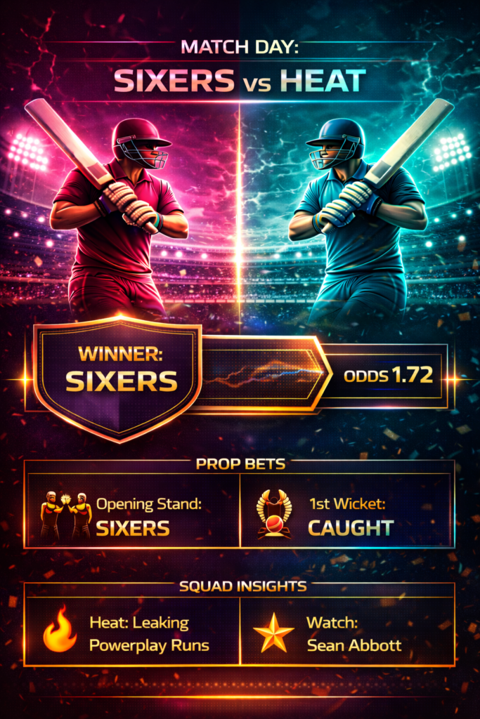 The Brisbane Heat are showing cracks in their armor, particularly with the ball in the powerplay. The Sydney Sixers, meanwhile, are looking increasingly composed and confident. With a firing top order and a disciplined bowling attack playing in familiar conditions, the Sixers are the clear favorites to take the points here.