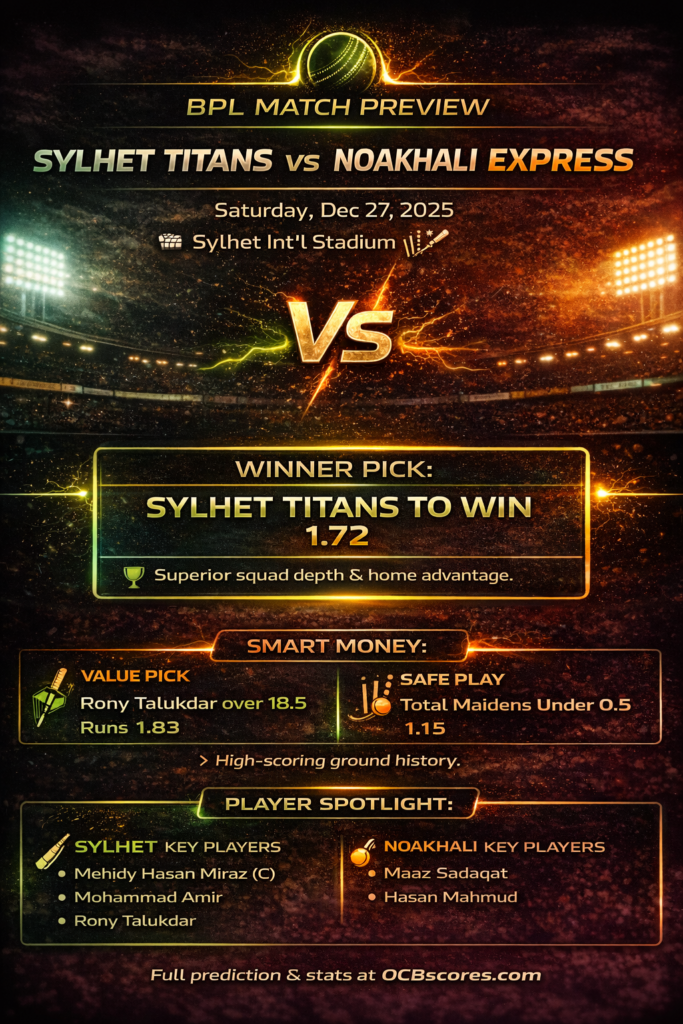The critical difference here is cohesion. Noakhali Express is still finding its feet in its debut season, whereas the Sylhet Titans are a well-oiled machine packed with BPL veterans. This experience gap should see the home side dominate.