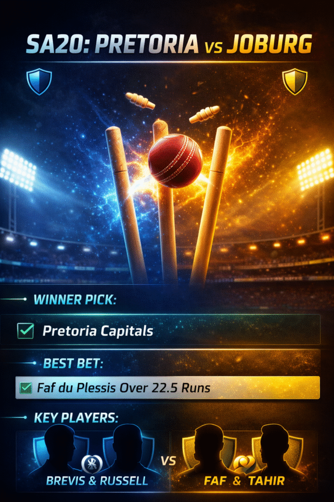 Our expert analysis points to a Pretoria Capitals victory. They have assembled a lineup that perfectly suits the conditions at Centurion—power hitters who enjoy the ball coming onto the bat and a pace attack that can exploit the bounce. The Joburg Super Kings are in a transition phase with a new squad that may lack the chemistry and batting depth to challenge the Capitals at home.