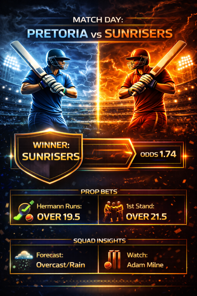 This contest pits Pretoria's potential against the Sunrisers' proven consistency. We are backing the Sunrisers Eastern Cape to take the win. Their batting lineup is firing, and their pace attack is tailor-made for the bouncy Centurion pitch. Conversely, Pretoria's batting frailty remains a major concern against such a high-quality bowling unit.